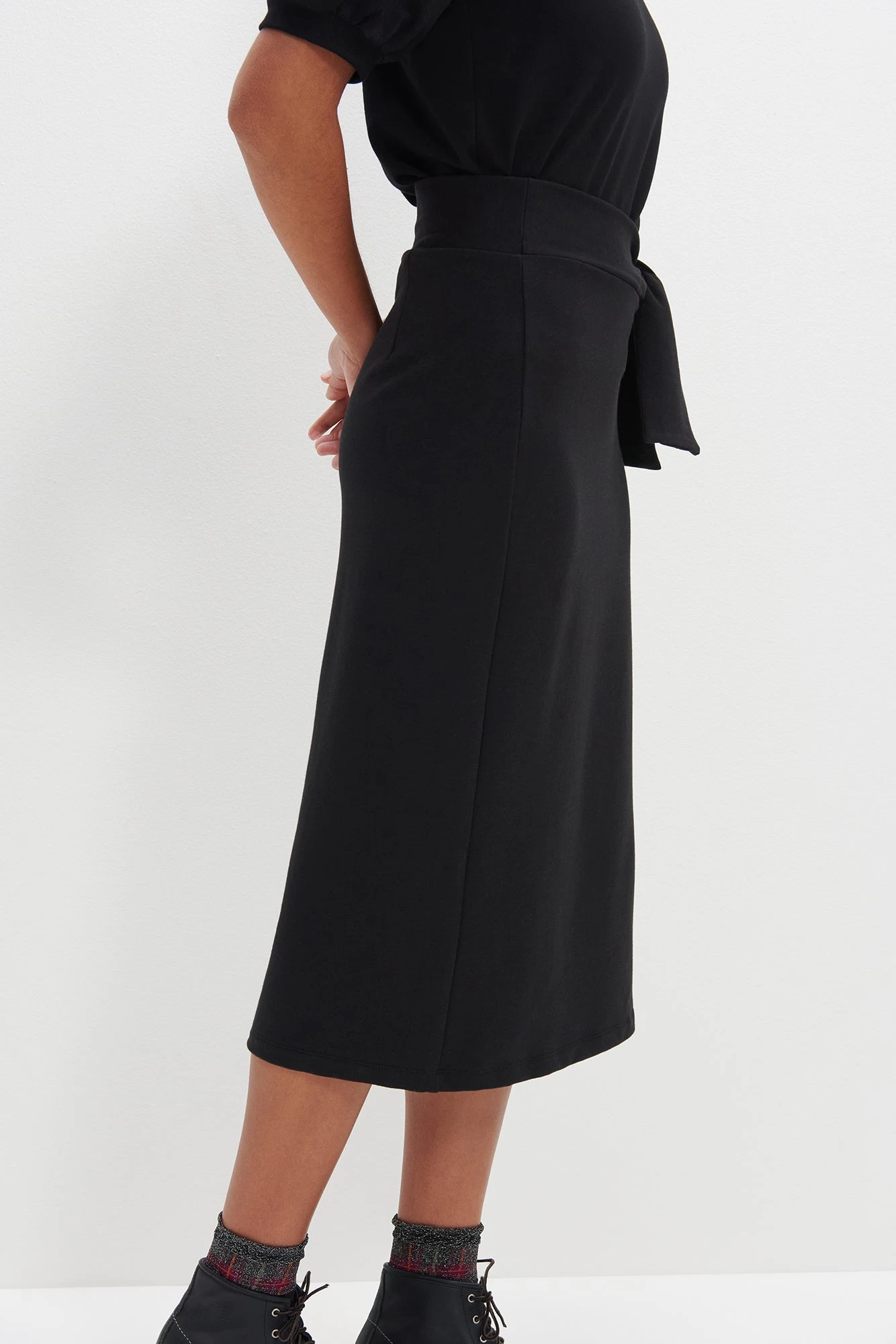 High waisted midi skirt with an adjustable waist tie. Made in Reverie Terry, our softest blend of Organic Cotton and Modal.