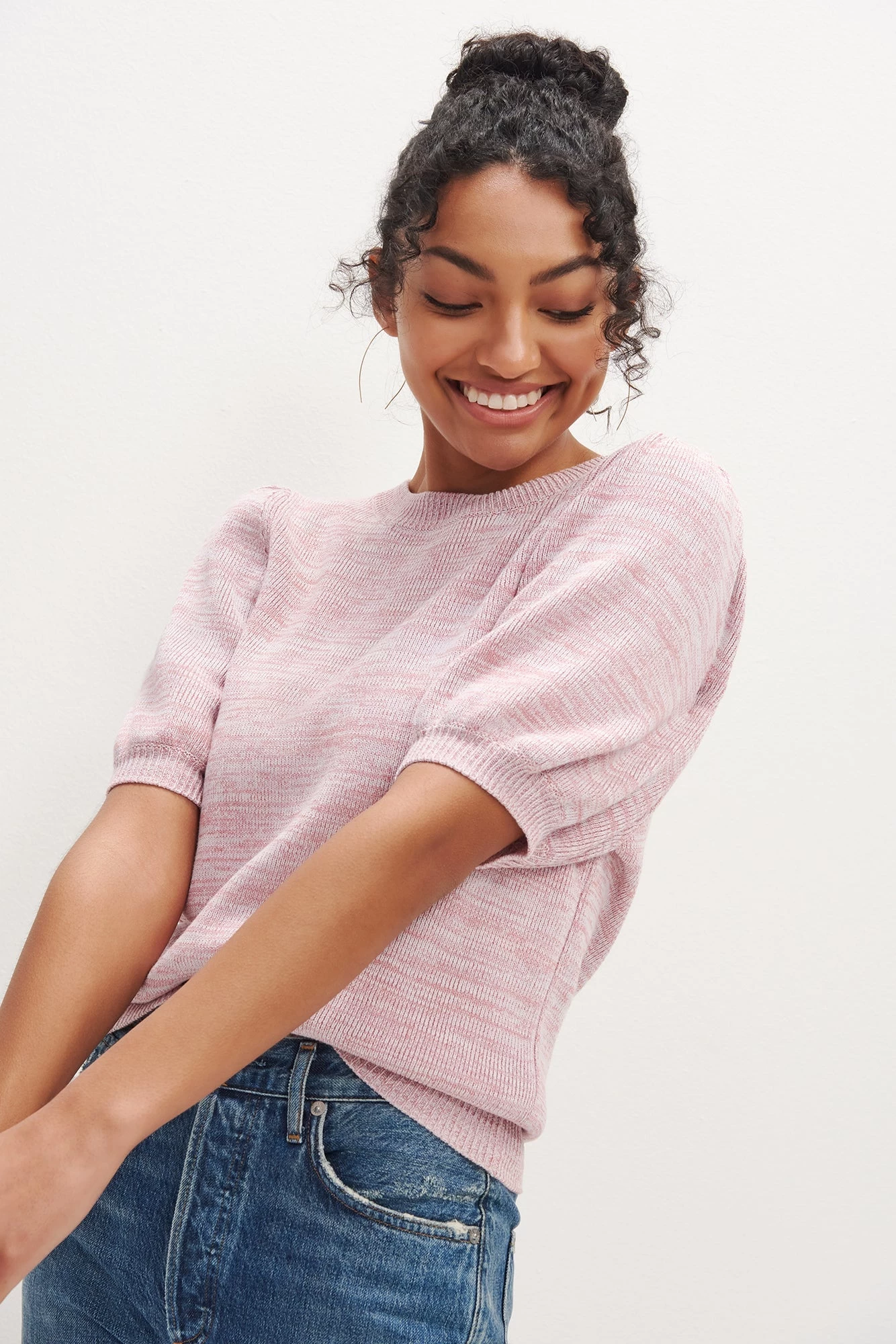 Short sleeve sweater tee with a round neckline and slight volume at the sleeves. Made in our soft and breathable Organic Cotton, free of pesticides and harmful toxins.