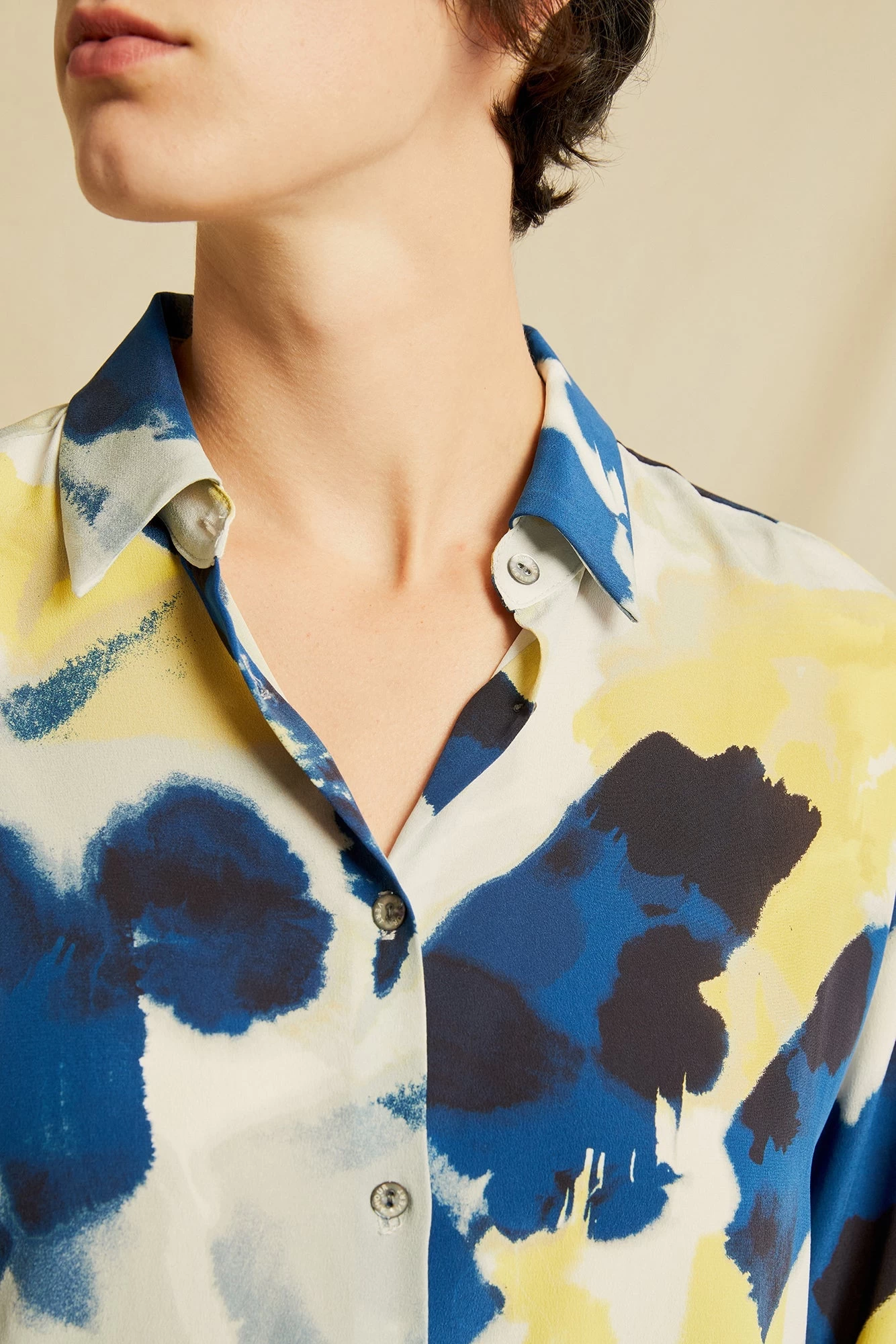 Long sleeve button-down blouse with a collar and easy, relaxed fit. Made in our finest silk, this is the perfect staple to have year-round.