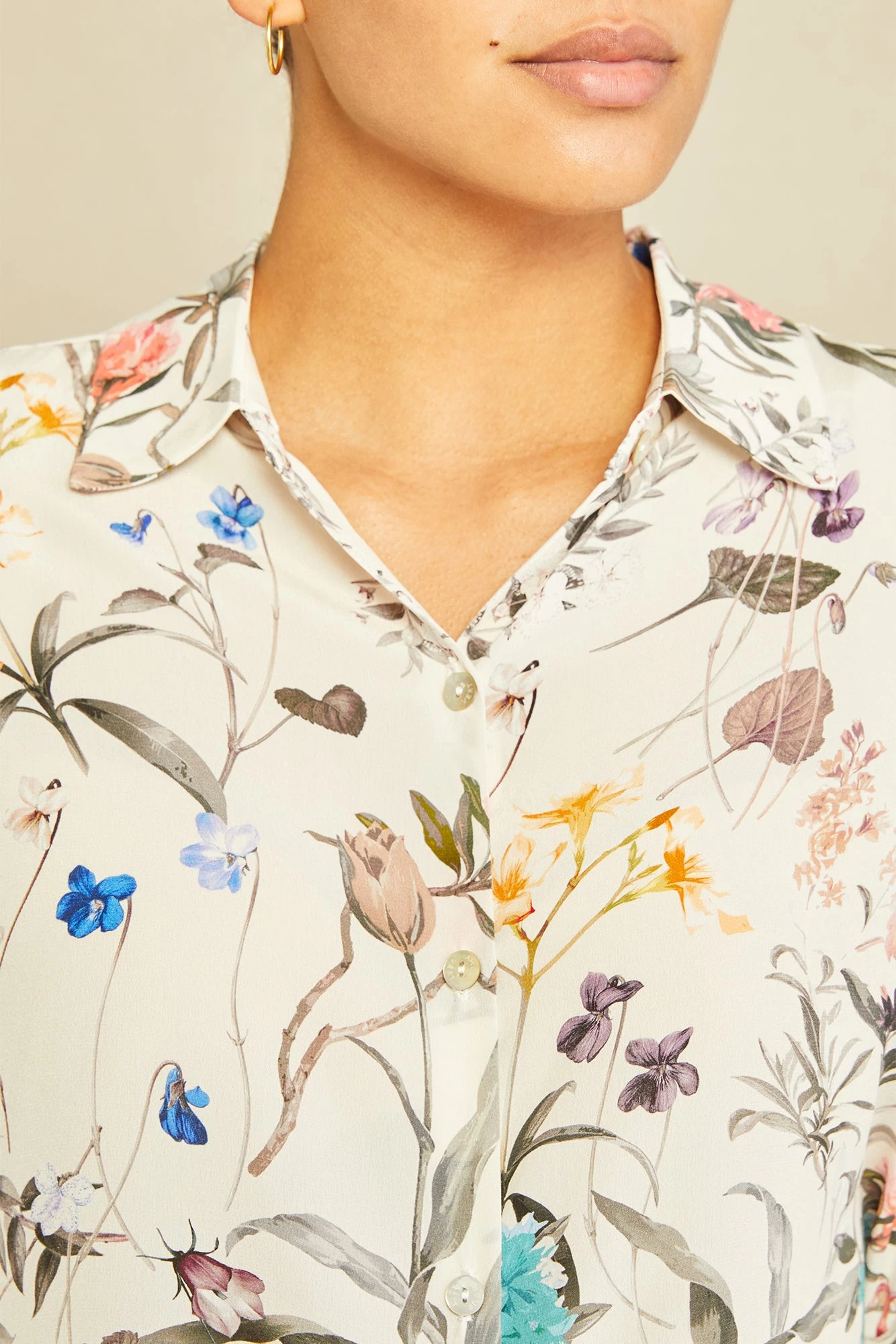 Long sleeve button-down blouse with a collar and easy, relaxed fit. Made in our finest silk, this is the perfect staple to have year-round.