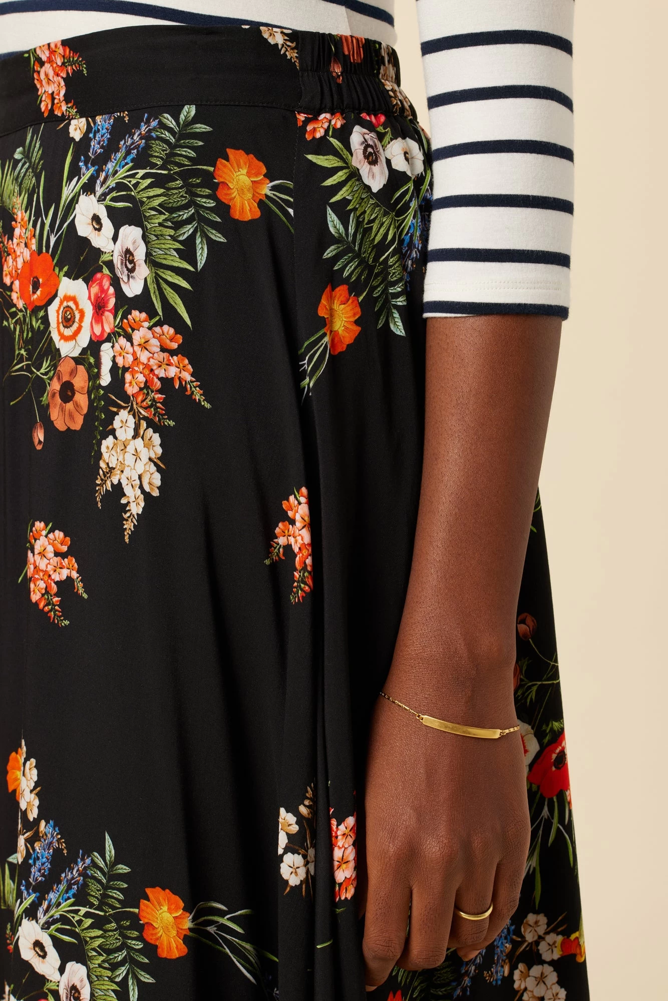 - Voluminous midi skirt with a flat front and elastic waist in back Made from sustainable ECOVERO™ Viscose fabric.