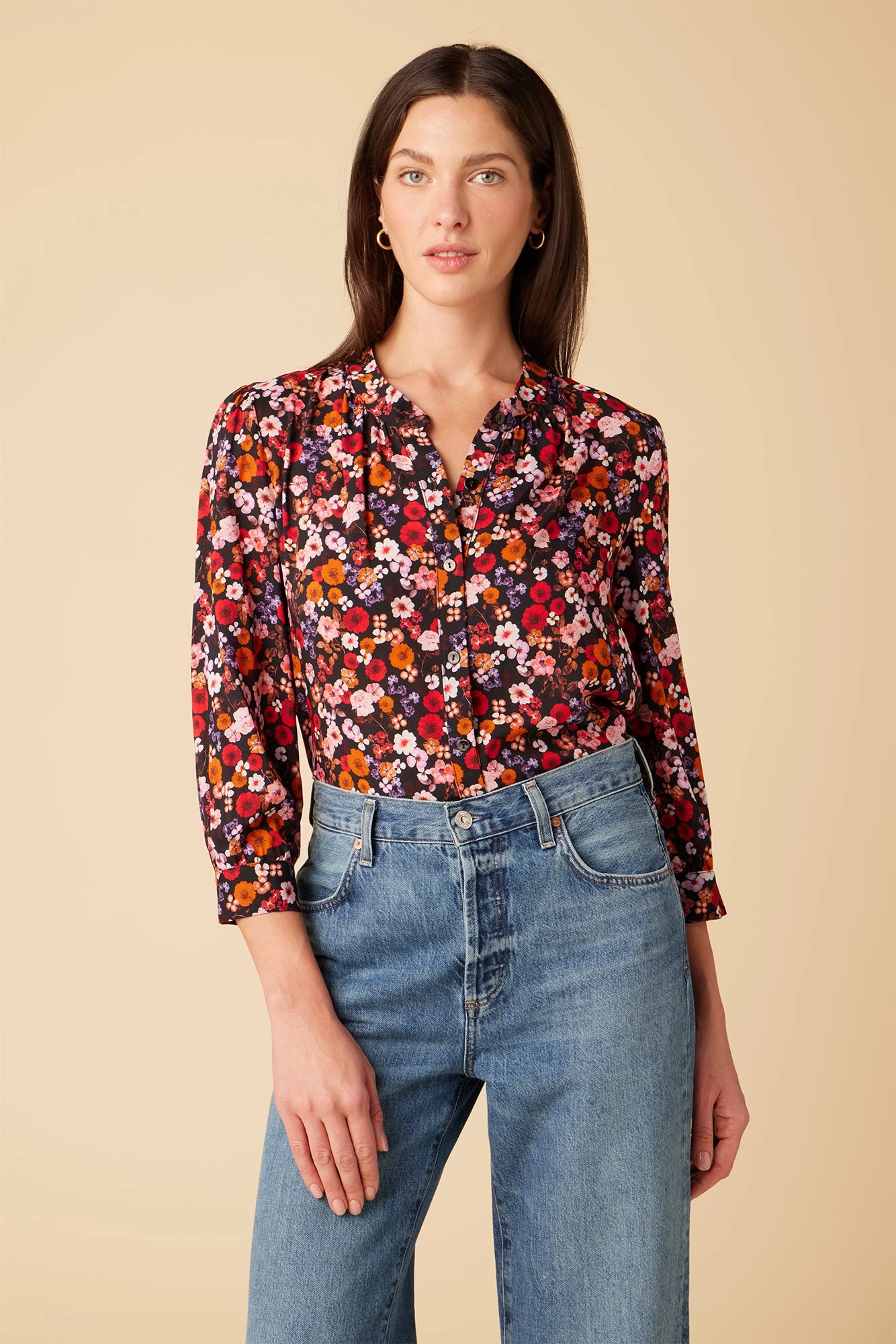 - 3/4 sleeve relaxed fit blouse