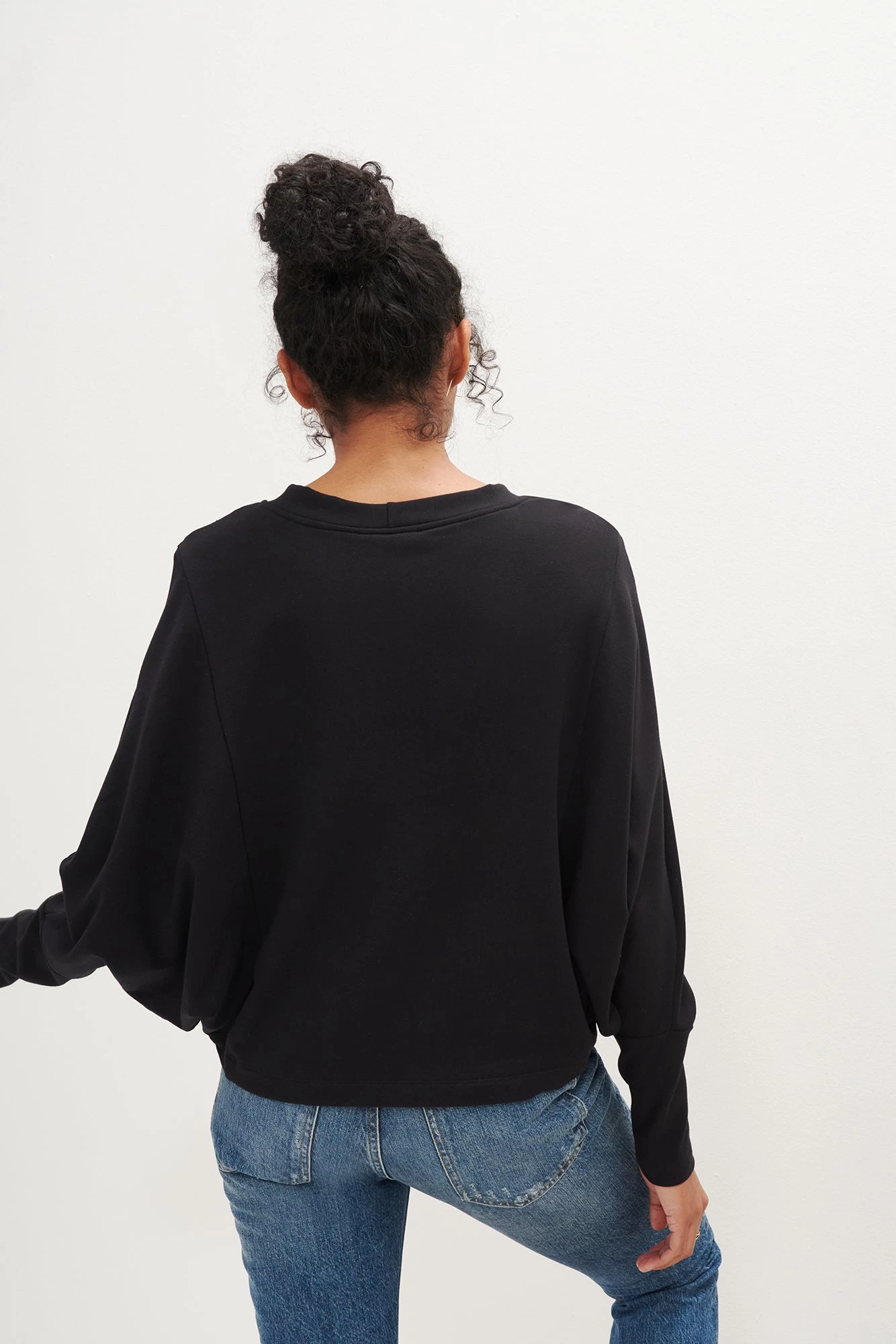 Cozy sweatshirt with dolman sleeves, a crewneck, and easy relaxed fit. Made in our Reverie Terry, a cozy blend of Organic Cotton and Modal.