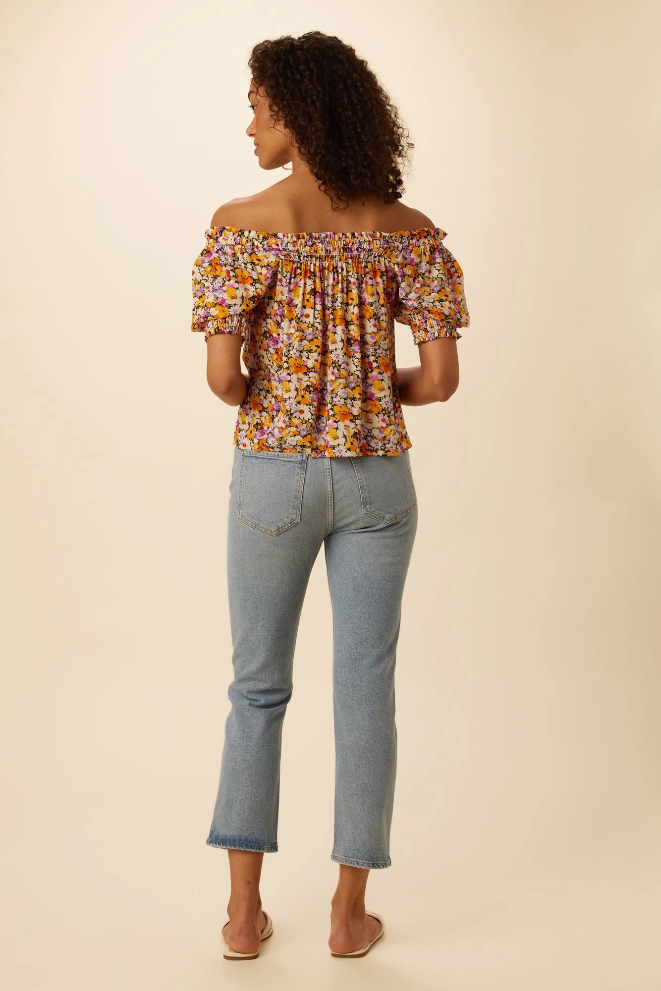 Made from sustainable ECOVEROâ„¢ Viscose fabric, this classic fit, cropped blouse features smocking at the neckline and sleeves and can be worn on or off the shoulder. We suggest pairing with high-rise bottoms, or our Blaze Ecovero Skirt for a co-ord look.