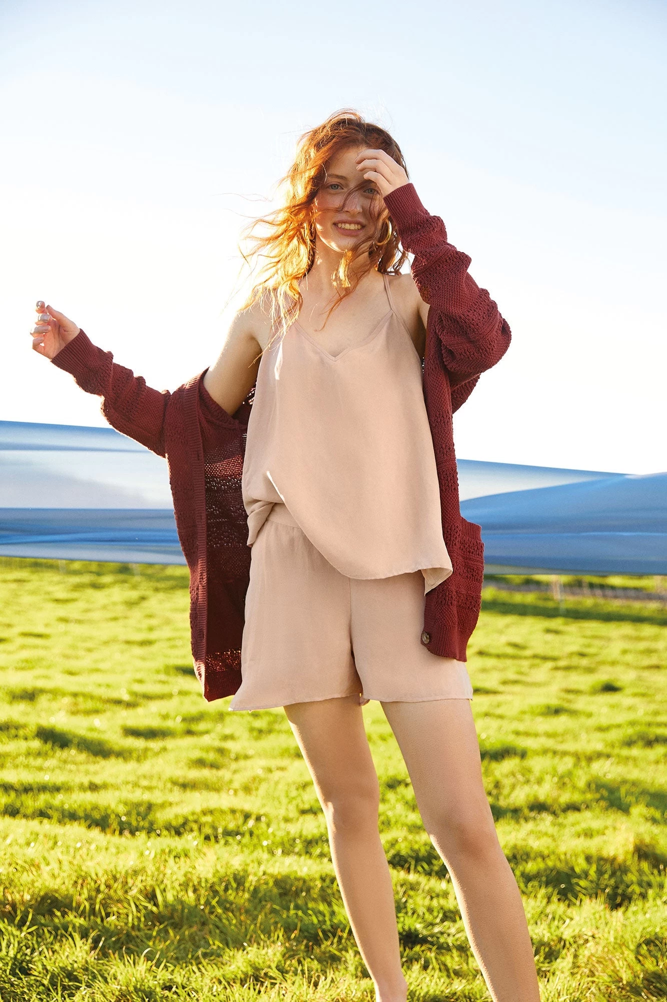 Spaghetti strap tank with a v-neckline, racerback, and loose silhouette. Perfect for lounging or wearing as a first layer, made from our luxuriously soft Cottonseed Cupro.