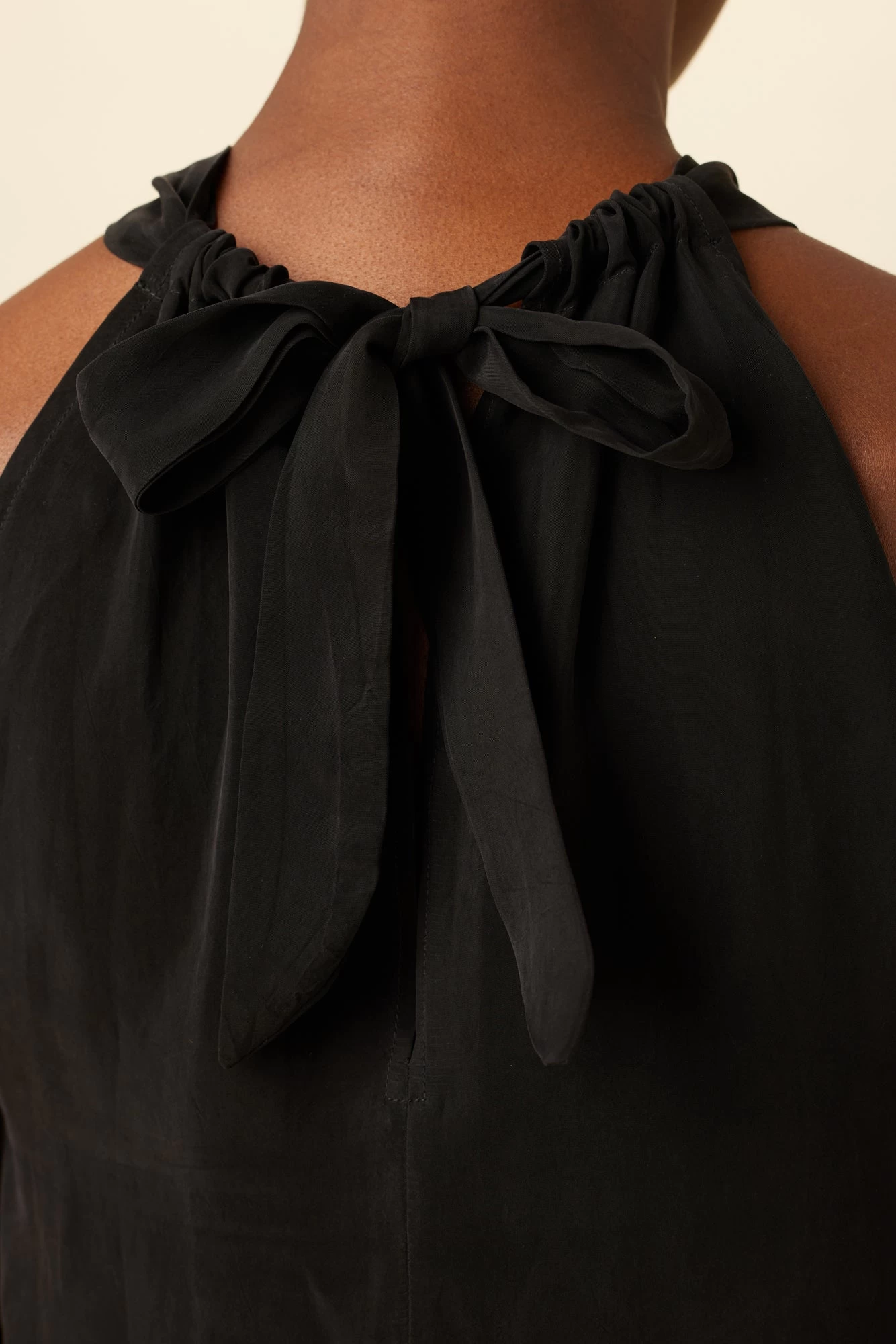 Relaxed fit, halter neck blouse with tie through keyhole, made in our super soft Cottonseed Cupro. This top pairs well with any rise bottoms, tucked in or over top.