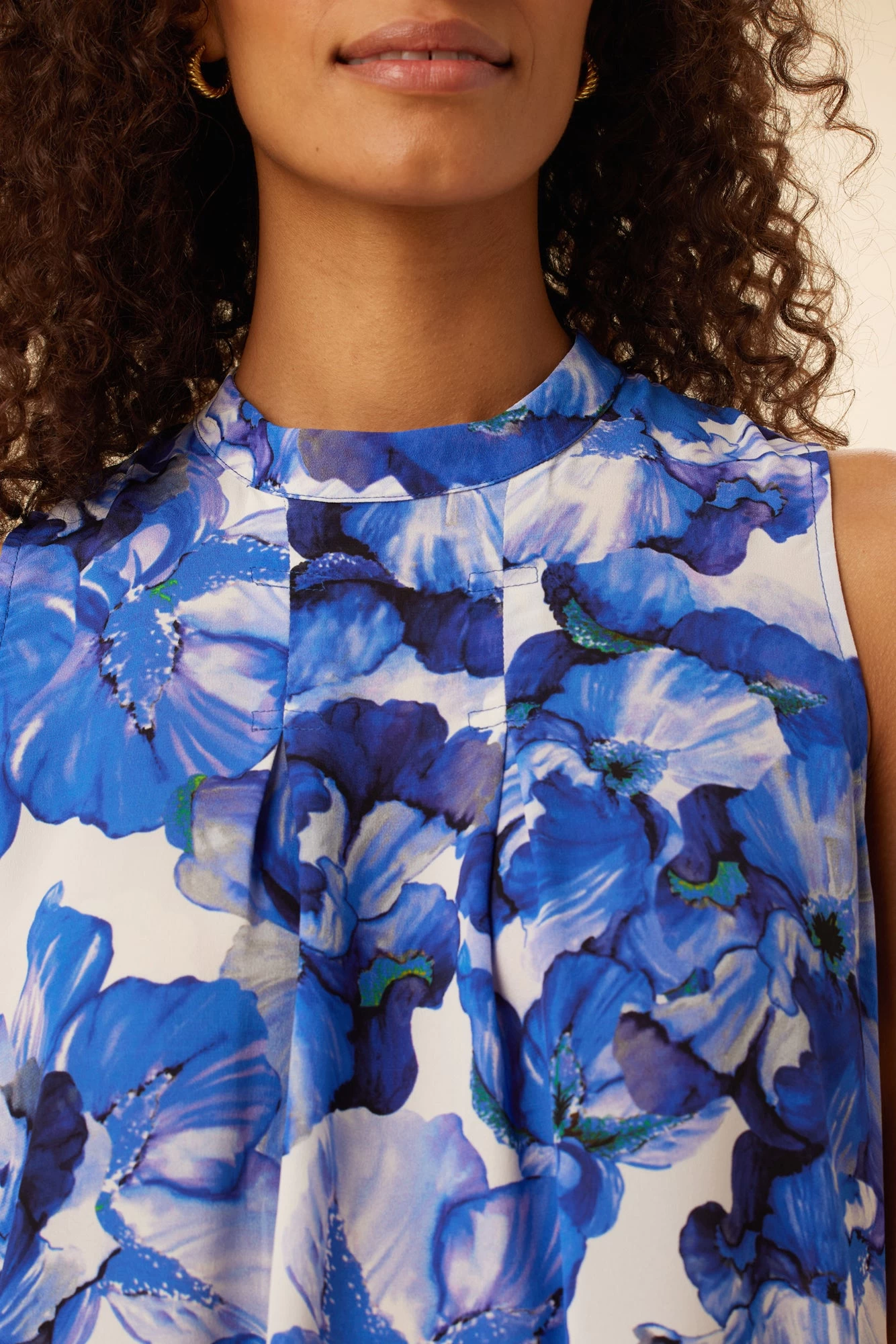 Relaxed fit, crewneck tank top with two box pleats at the neck. This versatile piece can be worn with mid or high-rise pants, either tucked in or worn over.