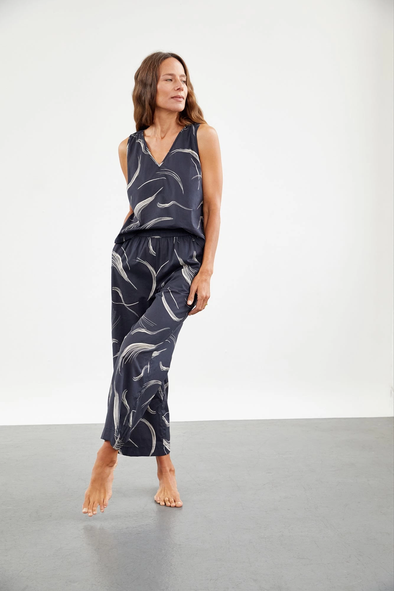 Pajama style tank with a v-neck and loose body. Made from our soft and lightweight organic cotton, perfect for lounging.Â