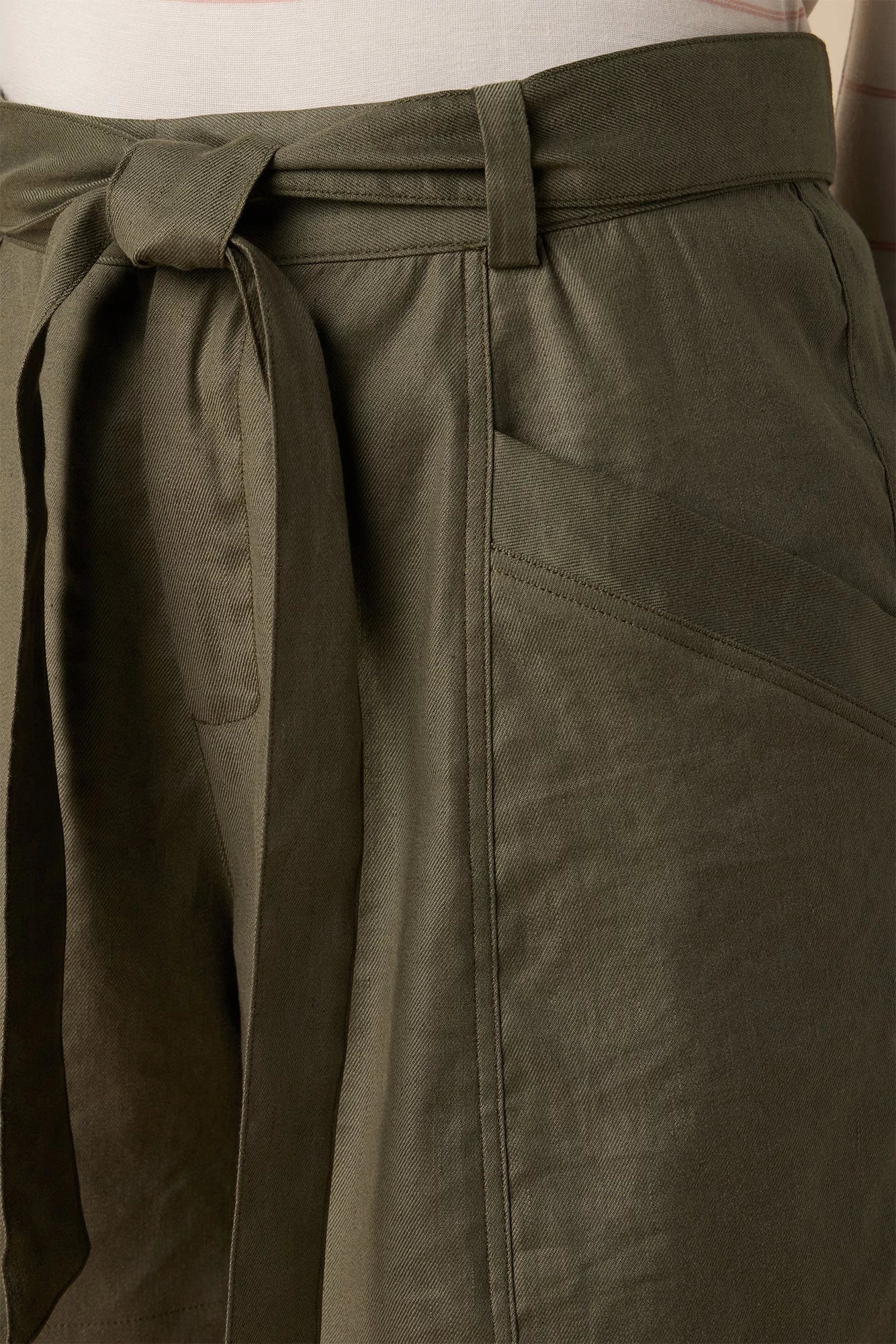 - Featuring a flattering high waist fit with invisible zipper and a fixed waist tie.