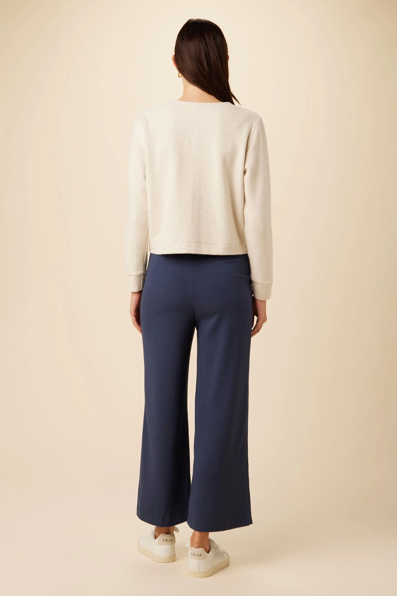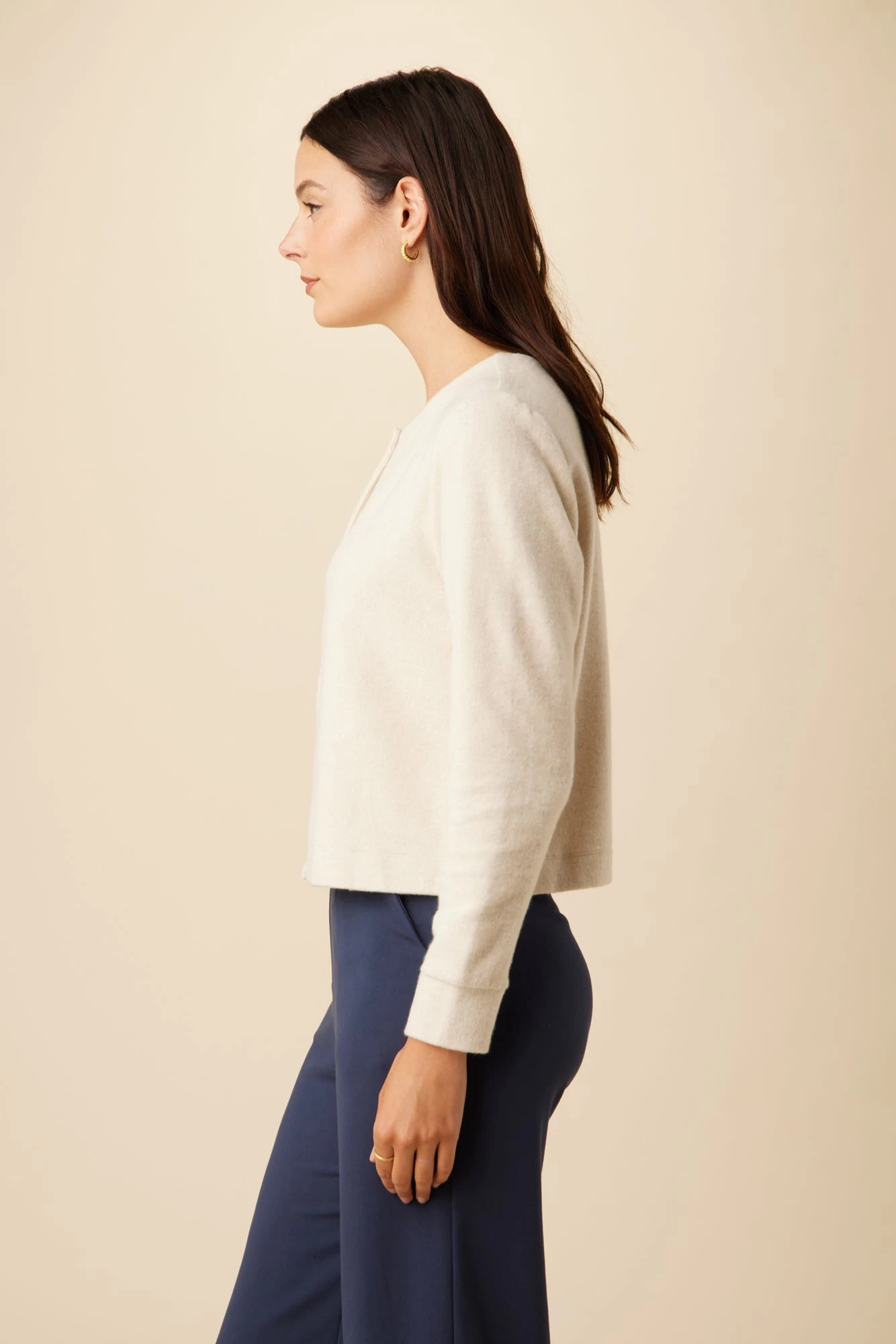 Relaxed fit, cropped cardigan with crew neckline and buttons down the center, made from our cozy Luxe Fleece fabric.