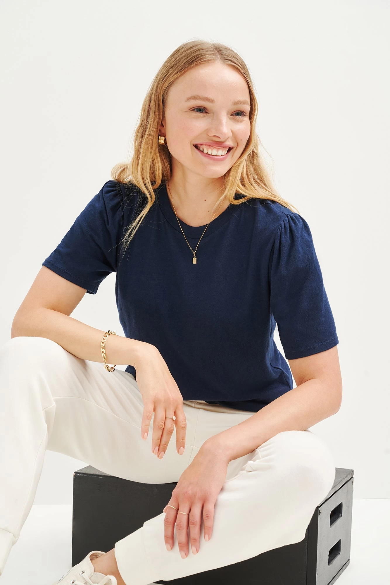 Basic crewneck tee detailed with pleating at the sleeves for a little added volume. Made from our soft and most comfortable blend of Organic Cotton and Modal.