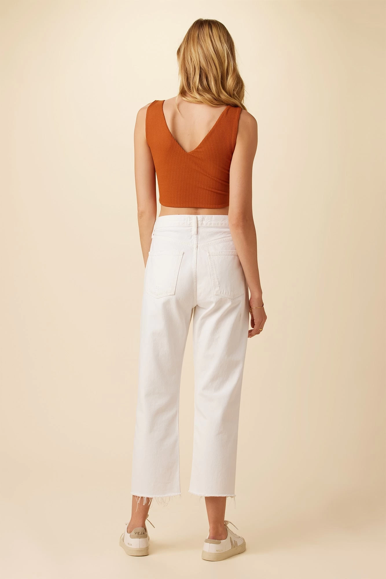This easy cropped tank is designed to be worn with high-rise denim, the Christy Skirt, or the Salice Mixed Cupro Pant for a more streamlined co-ord look.