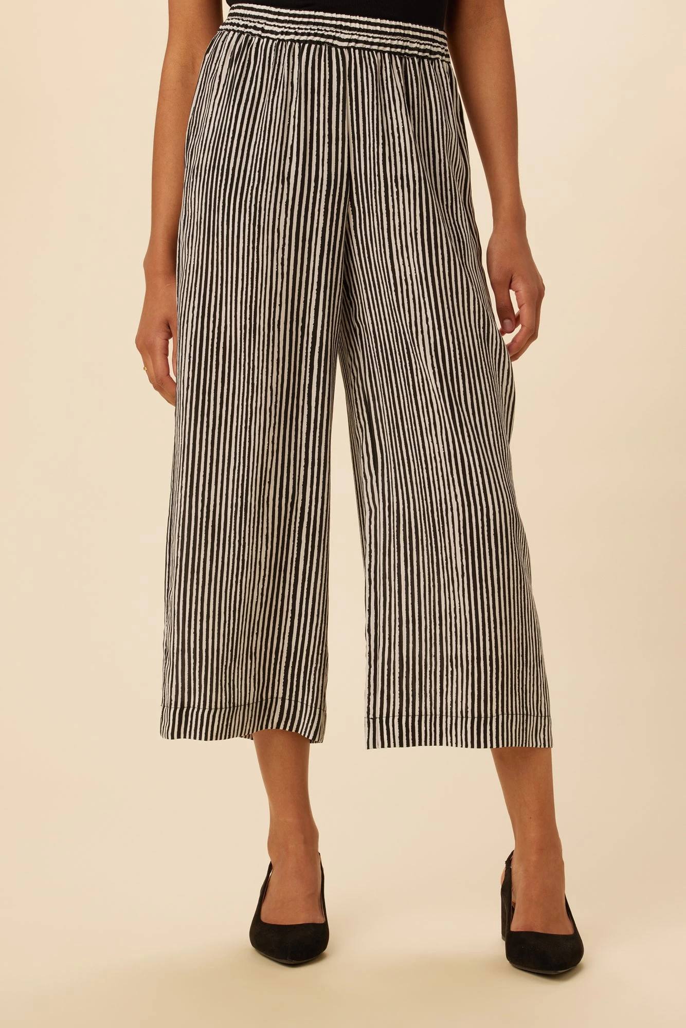 High waisted cropped pants with a straight leg, elastic waist, and side seam pockets. Made in our luxurious washable silk and cut in an easy and flattering silhouette.
