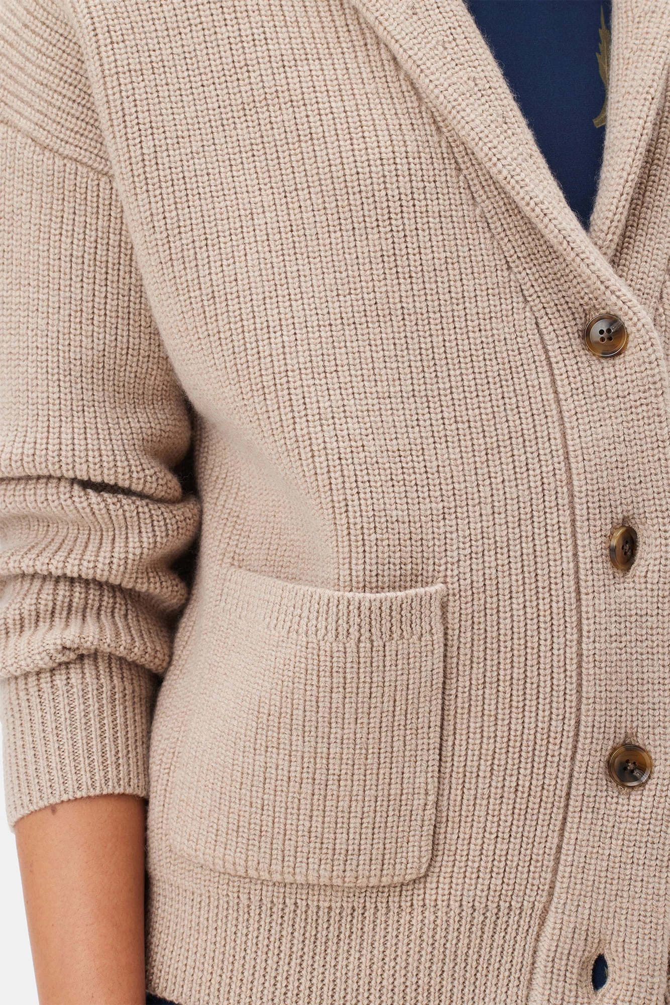 - Chunky wool cardigan featuring shawl collar, drop shoulder, rib stitching and pockets that can be worn open or closed.